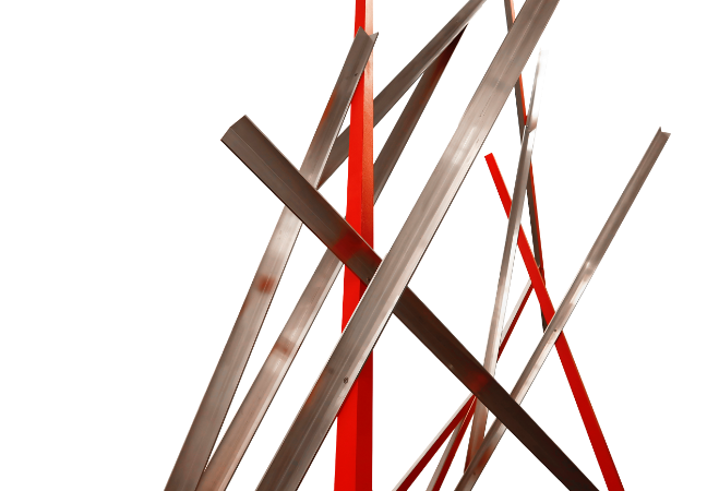 El interés por la escultura nace en la exploración de conceptos y ensayos en contacto directo entre el espacio y los materiales. Durante el proceso de investigación, he trabajado con el plano y posteriormente con la desmaterialización del plano para convertirlos en tejidos compuestos por múltiples líneas. Trabajos, junto al rojo, se expresan con mucho interés para descubrir como dibujar en la escultura.